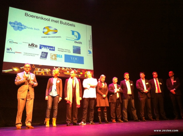 Since arriving back in The Netherlands about 6 months ago, I’ve mostly attended english-speaking networking groups and events, such as Delft INA and Connecting Women. Last night though, I attended a Dutch networking event and it was fantastic! Organised by Ondernemend Delft it was held at the Theater De Veste, it was a really impressive event. Borenkool is a traditional Dutch winter dish, and bubbels refers to the champagne, with which we toasted 2013.