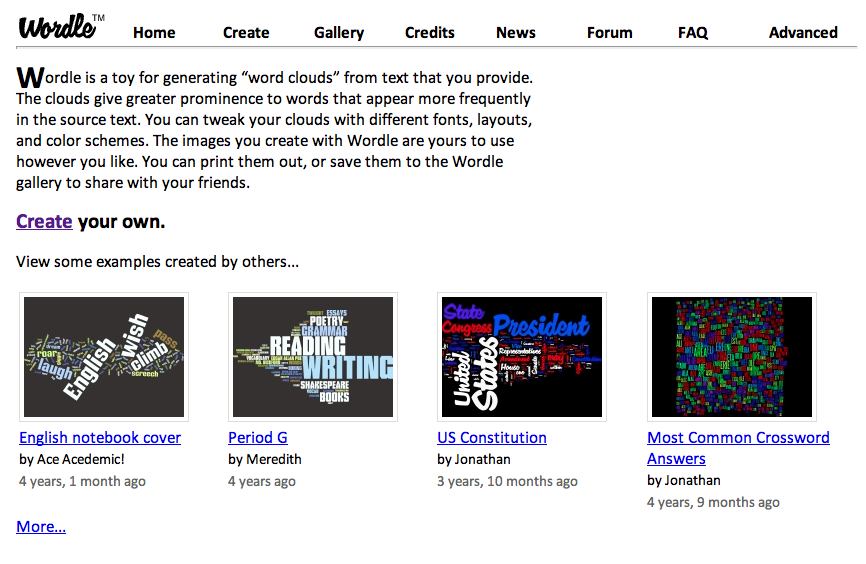4. Go to www.wordle.net (screenshot below)