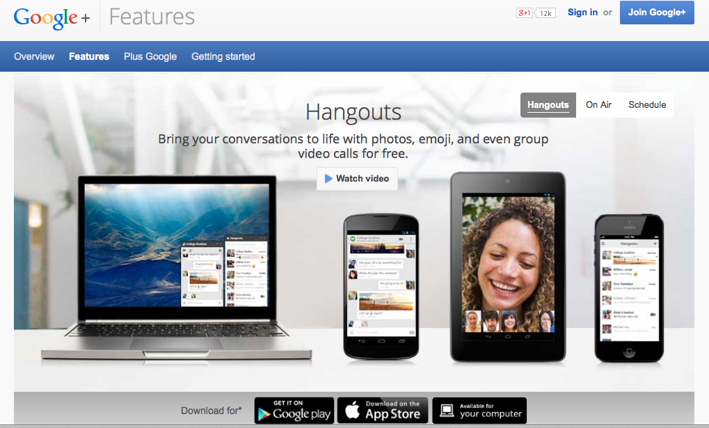 “Hangouts” are an app (feature) offered by Google. You can use this feature either on your computer, smartphone or tablet. Basically, they are a live video chat, similar to a Skype call.