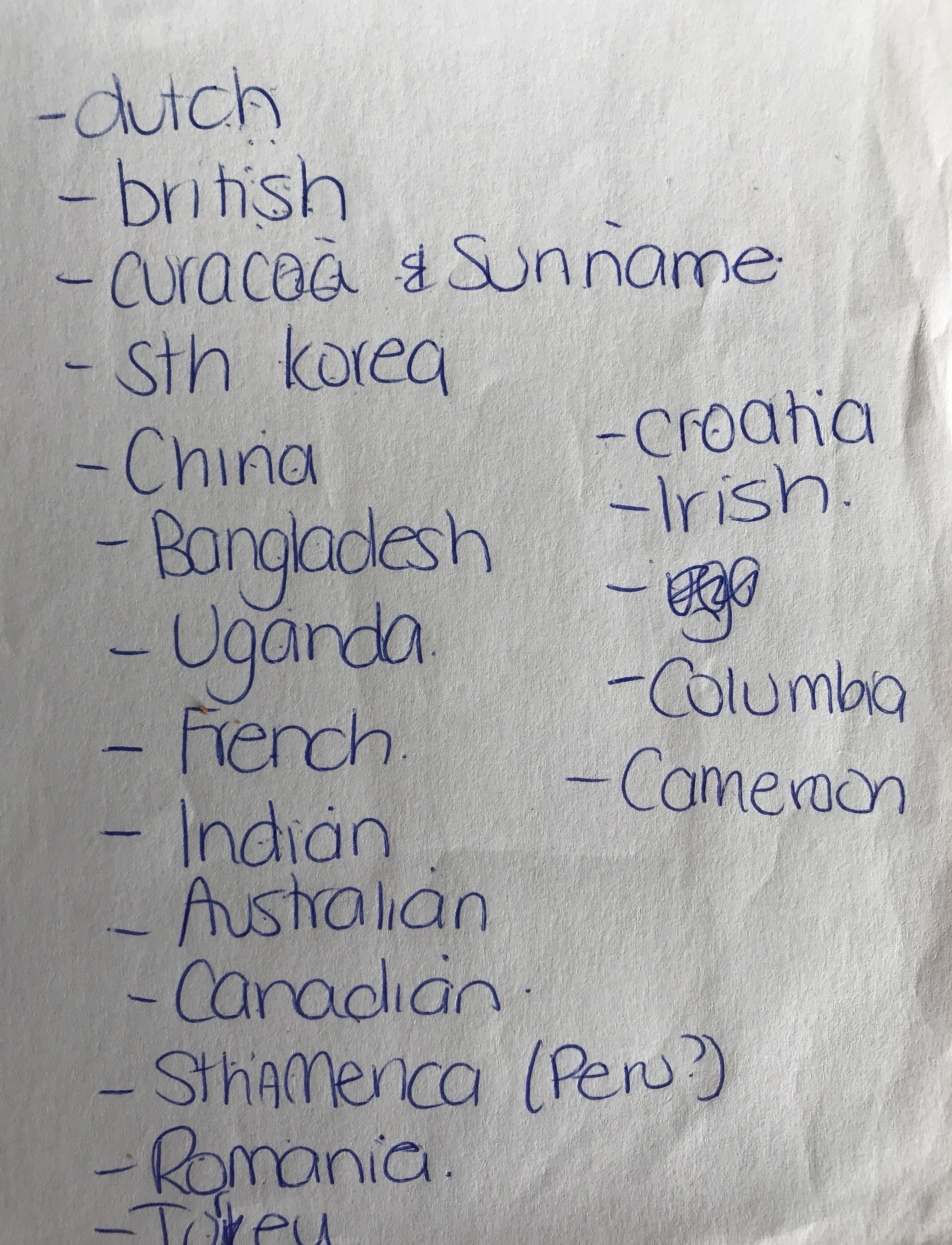 I’ve joined a very international team, I made some notes at a staff day about the countries everyone is from.