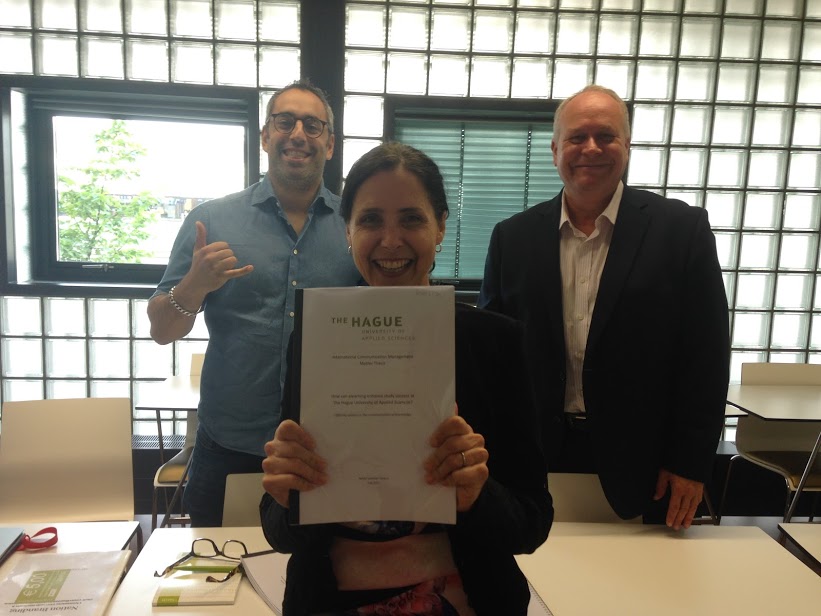 But, it’s DONE!  The photo above is directly afterwards, with my assessors Dr. Schelte Beltman and Michael Koenka.  The defence took place at The Hague University of Applied Sciences on 19 July 2017.  Though the manual says it’s a public defence, it reality, it’s not.  It’s usually only you and the assessors in the room.  I also had a third observer, someone who is training to be an assessor.