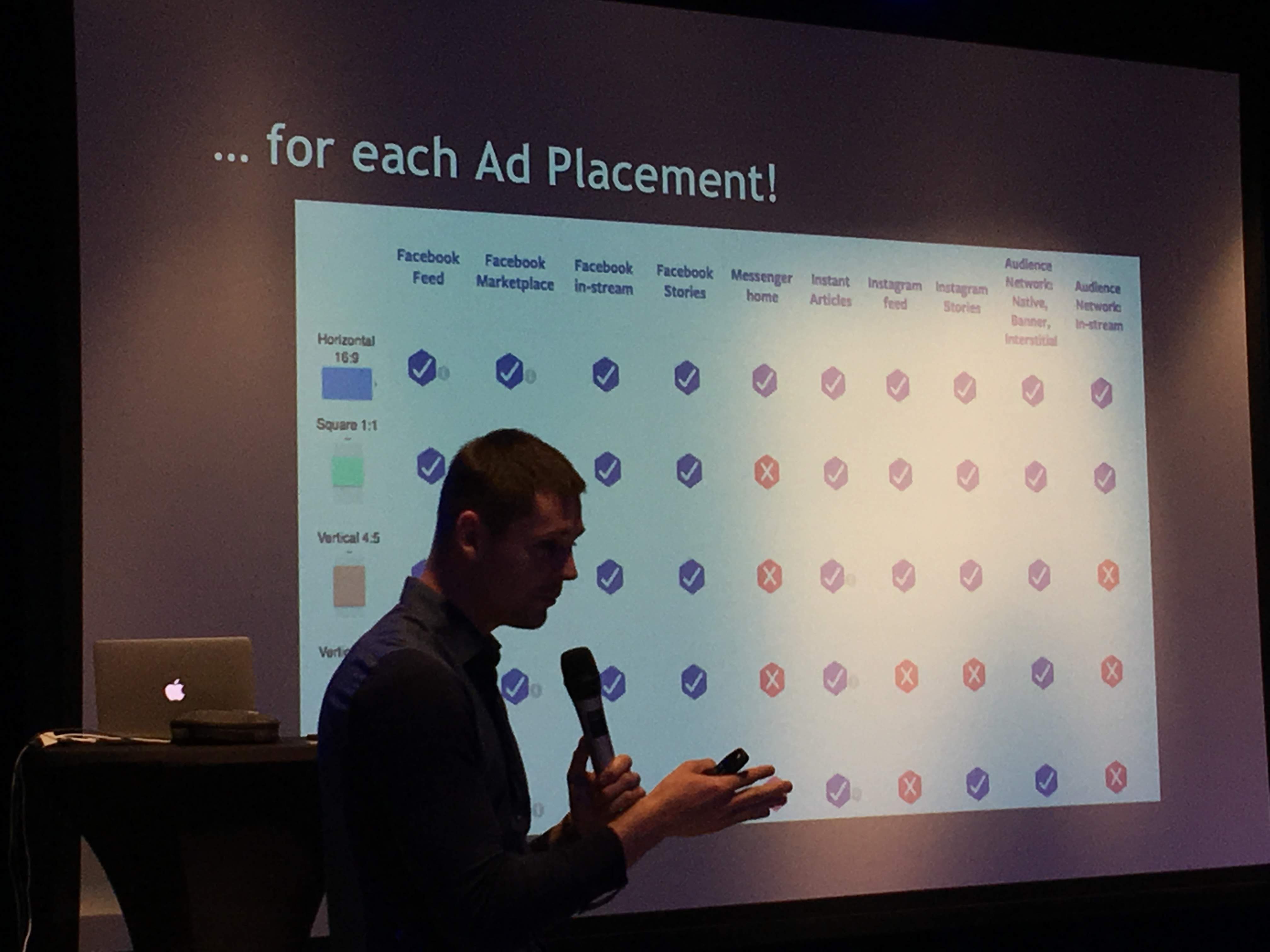 It was particularly useful to see his practical break down of the different styles and sizes of content for Facebook and Instagram Ads: