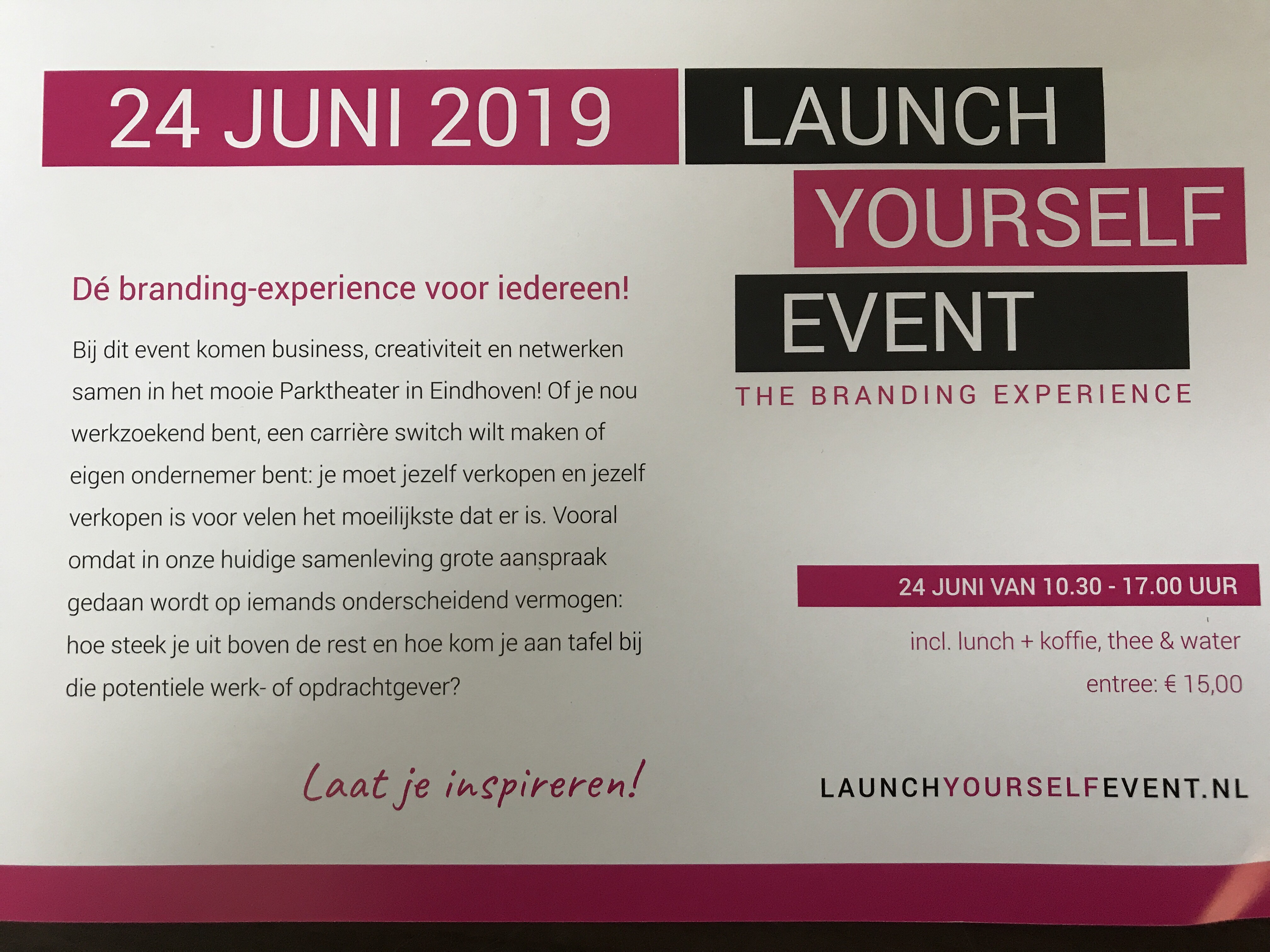 I attended this personal branding “Launch Yourself Event” at the Park Theatre in Eindhoven, the Netherlands on Monday 24 June 2019. It was aimed at two target groups – those looking for work, and those with their own business.