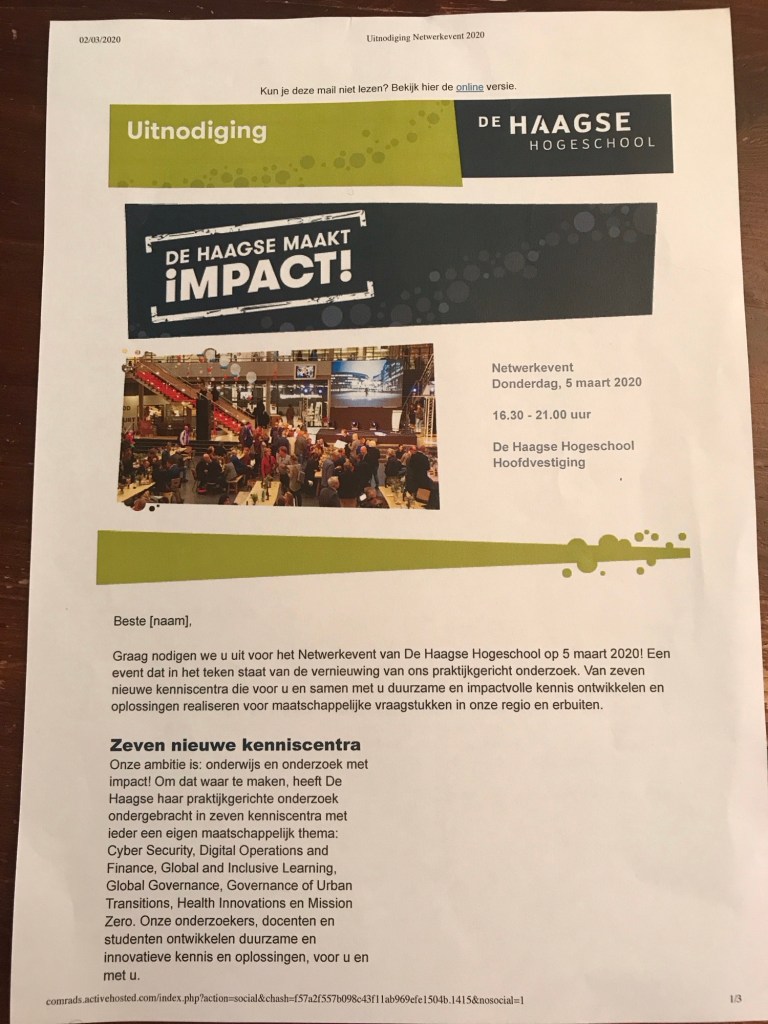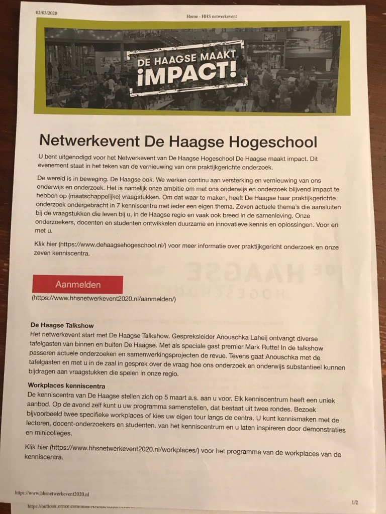 2020 De Haagse Maakt Impact Netwerkevent Posted on March 6, 2020January 3, 2024 by Renee On Thursday 5 March 2020, I represented The Hague Graduate School at this event at De Haagse Hogeschool. Related