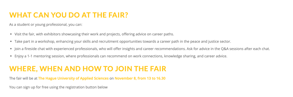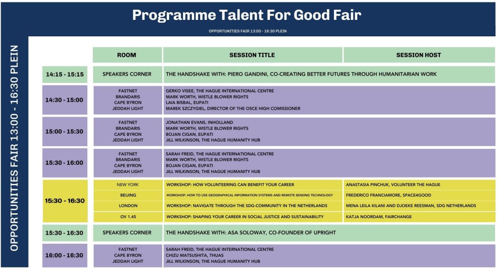 On 8 November 2023, I attended the Talent for Good Fair, held where I work at The Hague University of Applied Sciences.