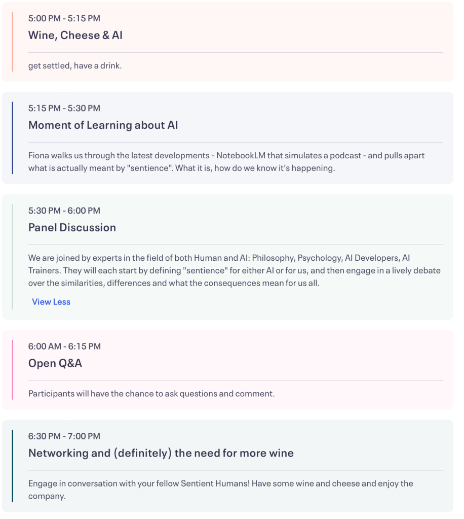 “AI Sentience”: What is it, how does it happen, how do we know it’s happening, and when? A panel conversation at the dividing line between Human and AI consciousness to understand the “foom” moment, what the differences are between the two, and why it all matters.