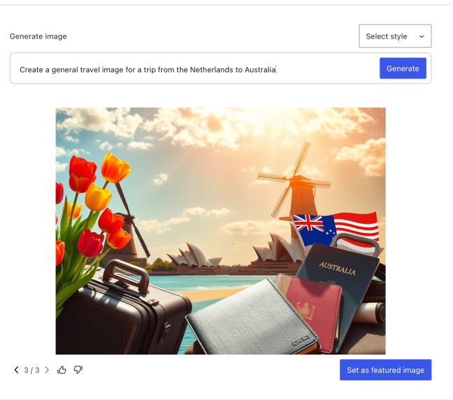 AI is improving significantly, and the last year I've noticed huge improvements, for example in image generation. The opportunity to use AI has become more prominent across tools I've been using for years, such as WordPress. I just wrote a post on WordPress about my Dutch partner applying for a visa for our visit to … Continue reading AI is still learning: case study of creating an image for a blog post